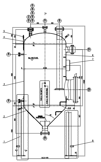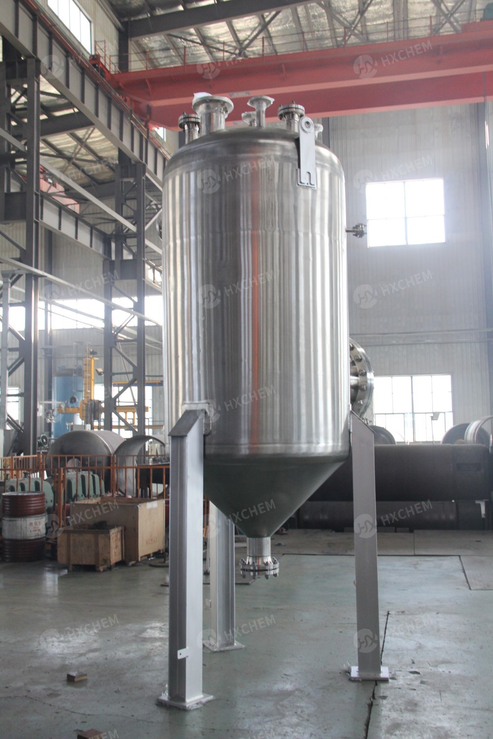 Ang kagamitan kabilang ang mga cylindrical vessel, manhole, thermo sensor, gas inlet, gas outlet, lifting lug, pressure gauge, safety device, support leg, atbp.